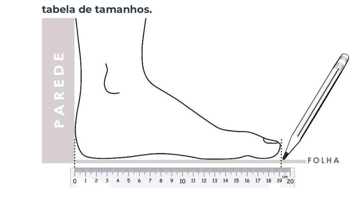 5. Anote a medida em centímetros e compare com a nossa tabela de tamanhos.